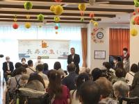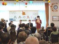 式典は、苑長や浦安市長の挨拶の後、祝賀者・長寿者の紹介、職員代表のメッセージ、祝賀者代表の入居者への花束贈呈&万歳三唱で締め。万歳三唱では、さすが人生の大先輩貫禄のある立派なご発声をいただきました