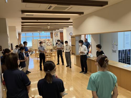 夜間は夜勤者だけの限られた人員で安全を確保しなければいけないので、落ち着いた的確な動きが求められます!日頃からトランシーバーで連絡をすることで慣れてもらっていますが、それでも実際に緊張感のある場面で連絡を取り合うと焦って相手が話している間に話そうとしてしまうなど課題も見つかりました。