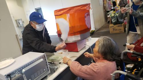 入居者さんはご家族と綿あめを召し上がったり、ハンドネイルを楽しまれました