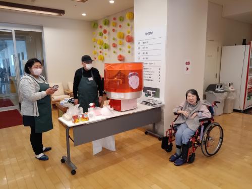 ボランティアさんに綿あめも作っていただき、あま~いおやつに、入居者さんからは、「こんな甘くて美味しいと思わなかった」「綿あめも好きだよ!」など、大好評の休日となりました