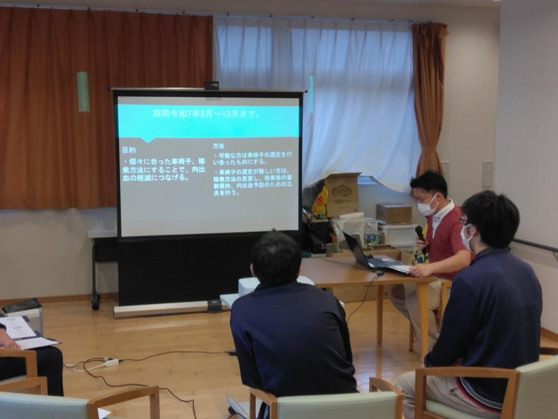 ・入浴・移乗班「その人に合った車椅子を使用し、車椅子での姿勢を正し内出血を減らしたい」