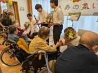 令和7年9月14日(日)に毎年恒例の「祝・長寿の集い」を開催しました。(当日まで、各階の担当を中心に職員総出でフロアの飾りつけなどの準備をがんばりました♪)