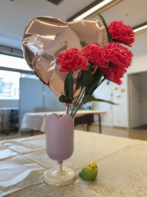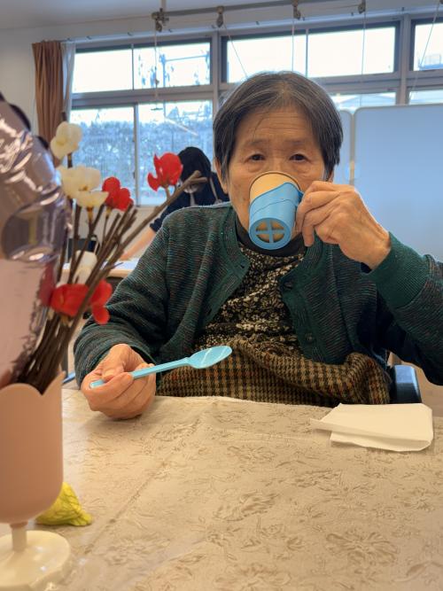 皆様への日頃の感謝を込めて、食事・口腔ケア班のメンバーが中心となり準備。事前に入居者さんにはホットチョコレート