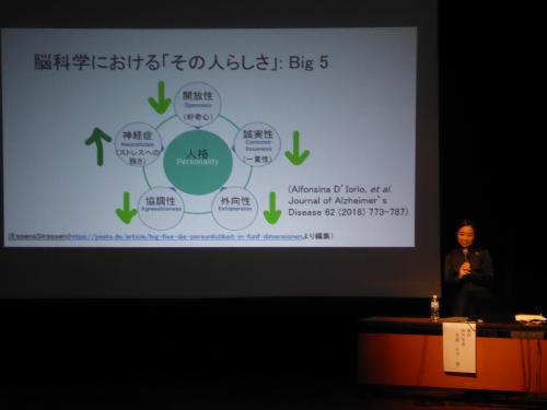 一部は、恩藏絢子先生による「脳科学から見た認知症~その人らしさは失われない」の講演。実際にお母様を看取られた経験を基に脳科学という専門的なお話を聞かせて頂きました。興味深く拝聴し、気が付いたら終了時間に・・