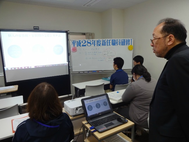 今年度の新任職員を迎えるにあたり、新卒者向けの研修として、2月の中旬に「赴任前現場体験研修」(3日間)を実施。新年度から一緒に働く仲間との顔合わせを兼ねて、見学を中心に行いました。体験後、アンケートを記入⇒仲間の中で発表する機会を設けました。