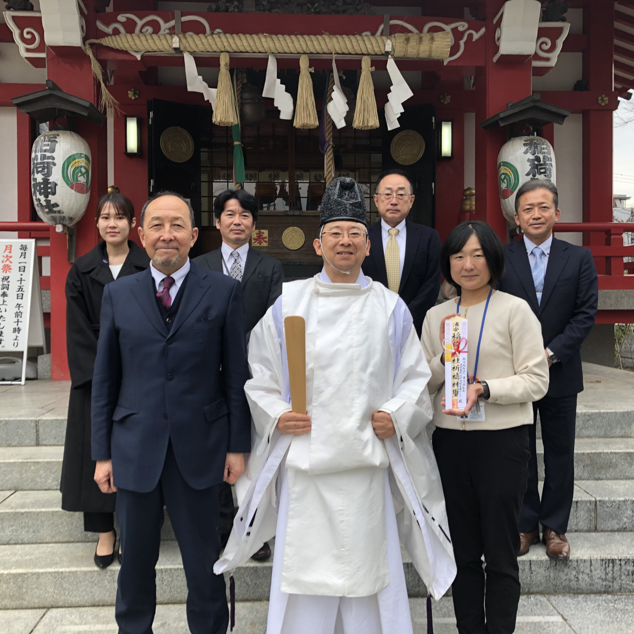 開設に先立ち、稲荷神社でご祈祷していただきました